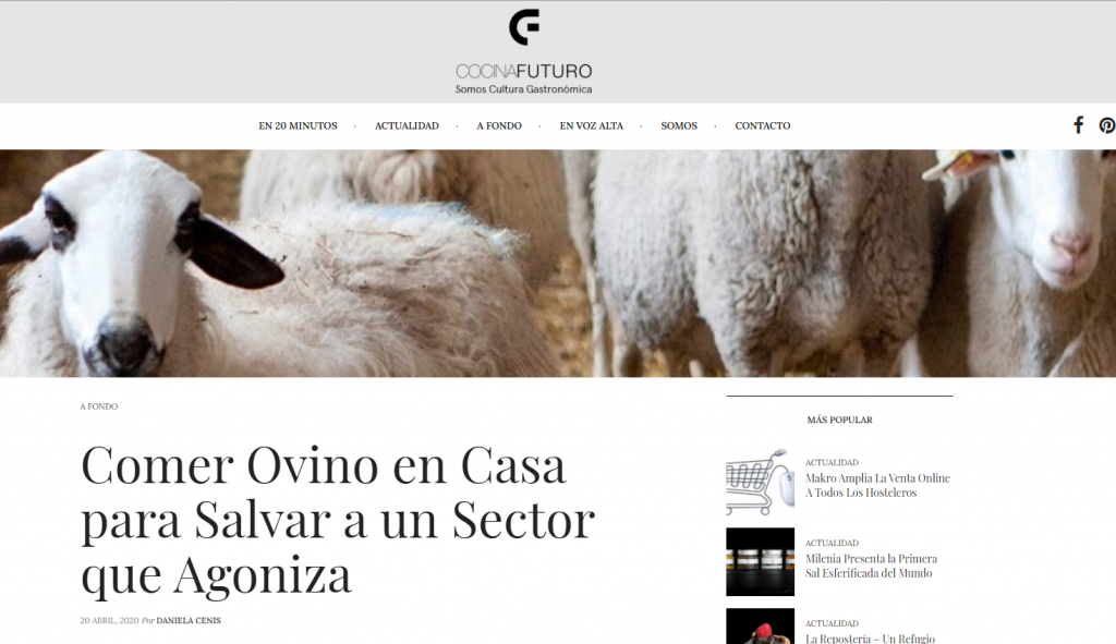 El diario Cocina Futuro dedica una noticia a Burgos Alimenta, en la que denuncia la precaria situación en la que se encuentran el sector ovino y caprino, debido a la gran dependencia que tienen de la restauración.