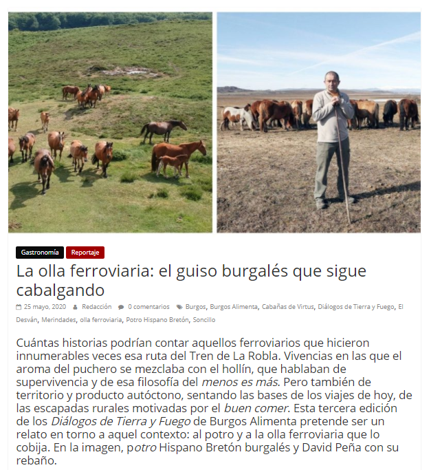 Los diarios Origen y el Periodista Digital, dedican una noticia a Burgos Alimenta, y una nueva entrega de sus Diálogos de Tierra y Fuego. En este caso, la noticia tiene como protagonistas al potro y la olla ferroviaria, que lo cobija en la zona norte de Burgos.